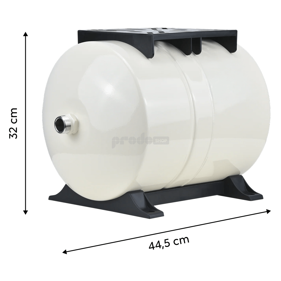 hidrofor tartály, munkanyomás 10bar, csatlakozási méret 1", vízellátást használnak, a háztartási vízművek részeként állandó nyomást tart fenn a rendszerben, csökkenti a szivattyúindítások számát és meghosszabbítja az élettartamát.