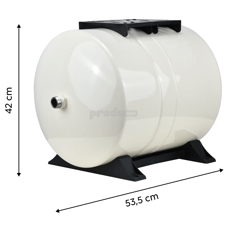 hidrofor tartály, munkanyomás 10bar, csatlakozási méret 1", vízellátást használnak, a háztartási vízművek részeként állandó nyomást tart fenn a rendszerben, csökkenti a szivattyúindítások számát és meghosszabbítja az élettartamát.