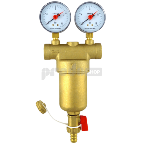 A NEPTUN sárgaréz szűrő AISI 304 rozsdamentes acél szűrőbetéttel rozsda, homok, sár és korróziós részecskék szűrésére szolgál. A szűrő 2 nyomásmérővel rendelkezik, 0-16 bar mérési tartománnyal. Ha a szűrő eltömődött, a kimeneti nyomásmérő alacsonyabb nyomást mutat. A szűrő vízszintes beszerelése ajánlott.