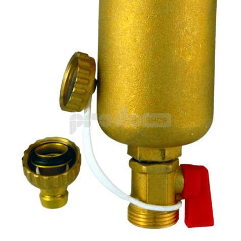 A szűrő megfelelő működésének helyreállításához ki kell nyitni az alsó golyóscsapot, így a szűrőháló átöblítésre kerül, és a szűrő tiszta marad.